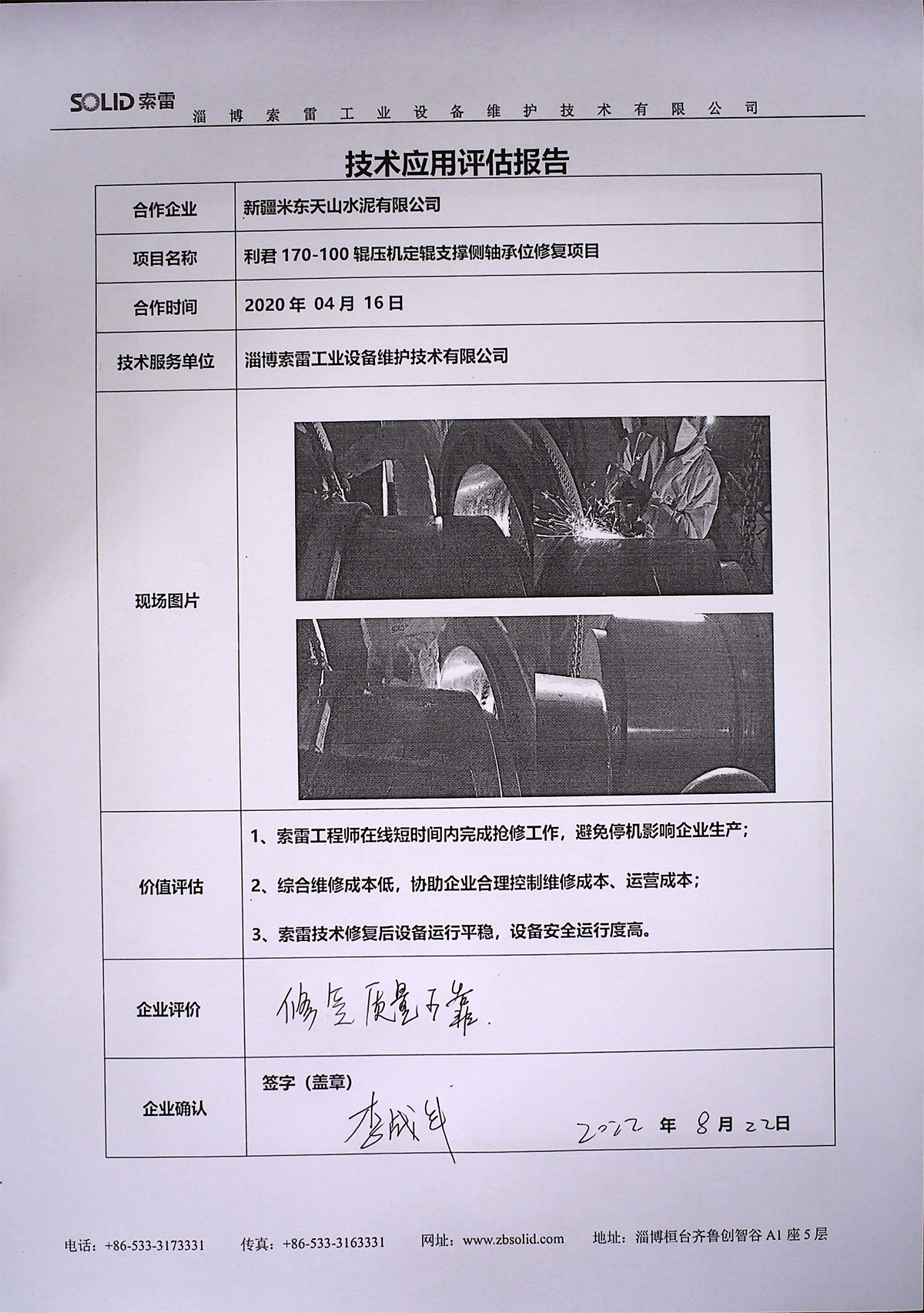 淄博索雷工業設備維護技術有限公司(簡稱:索雷工業)始創于2014年,是領先的碳納米聚合物材料開創者及應用服務商。公司業務及經營網絡遍及全國31個省、自治區和直轄市,目前,主營業務隨“一帶一路”已拓展至西亞、東南亞、東亞沿線近十余個國家,已與近3000家企業實現合作和提供過上萬次的在線快修技術支持與可靠性高價值服務。